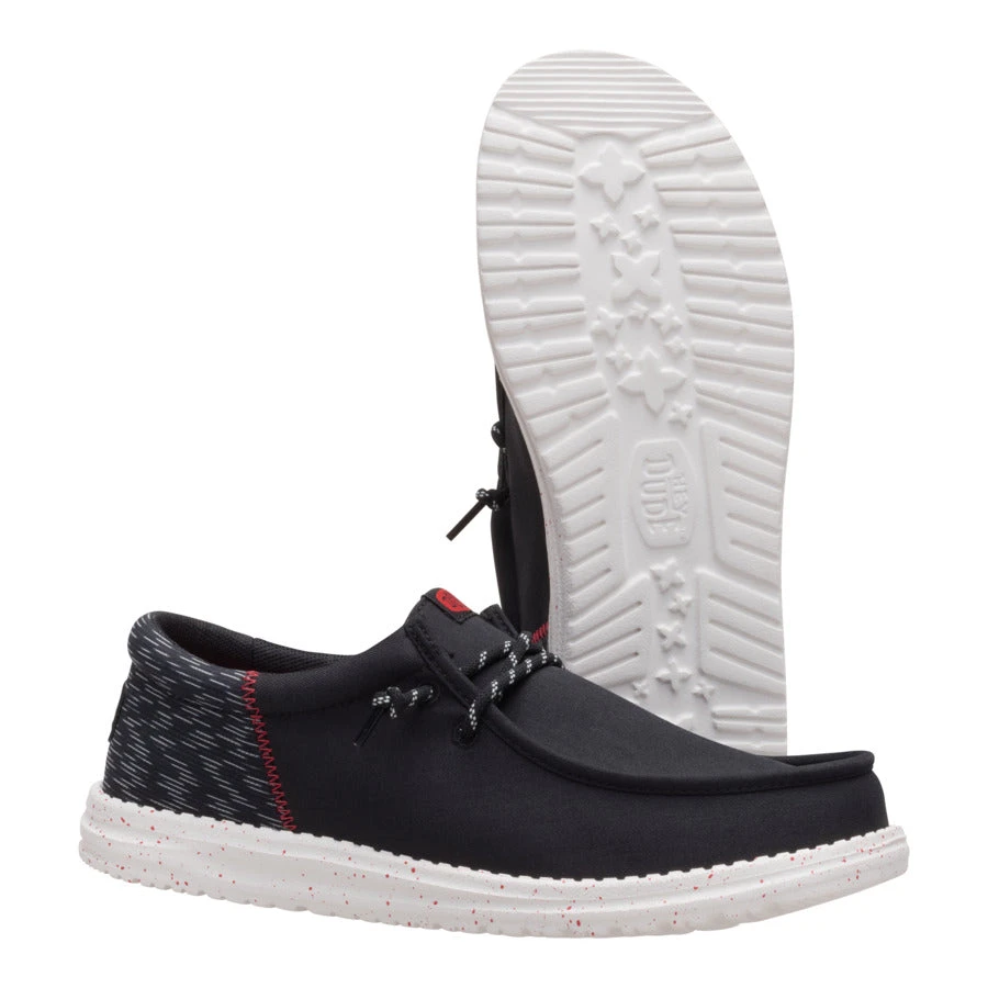 A little bit sophisticated, a whole lotta comfortable. These Wally Funk shoes have a jersey jacquard twill upper with some extra-special texture. Stretch laces and the HEYDUDEâ„¢ easy-on system make entry a breeze and the fit snug. The lightweight, flexible sole feels like floating, with some speckled detail just because.